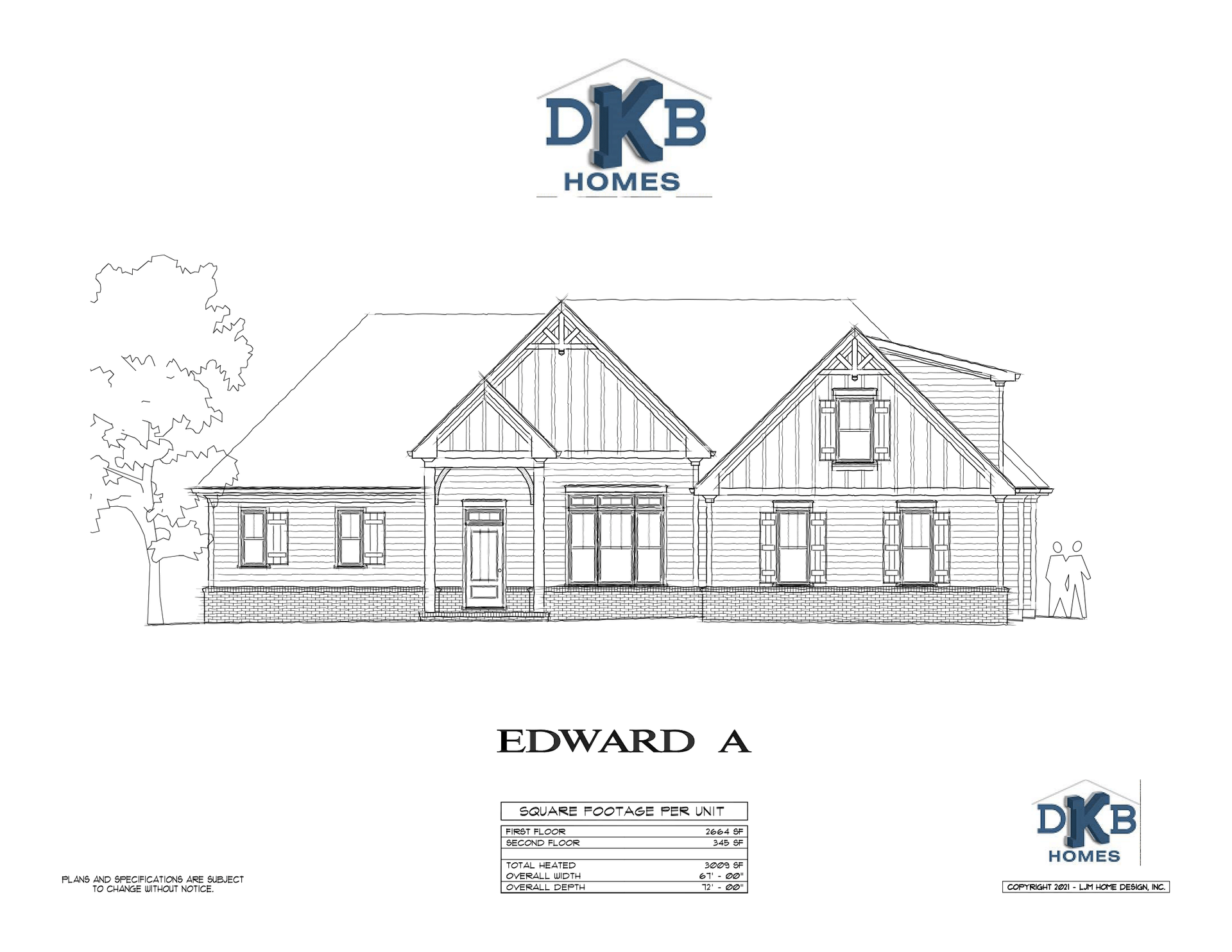Architectural rendering of a house, Edward B design, with a stone facade and gabled roof.